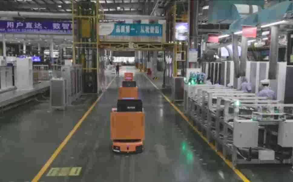 为车载冰箱物流配送打造的智能解决方案,,包含产中物流通过潜伏举升AMR搬运至线边,,,产后成品物流智能仓储,,,流程包含产中物流智能齐套入库,,,线边安灯叫料AMR智能配送至线边,,,成品入库、、出库,,,,通过无人堆高车机器人,,智能仓储管理替代人工作业管理,,,实现更高存储、、、、更高效率、、、更具柔性化的解决方案。。。。